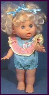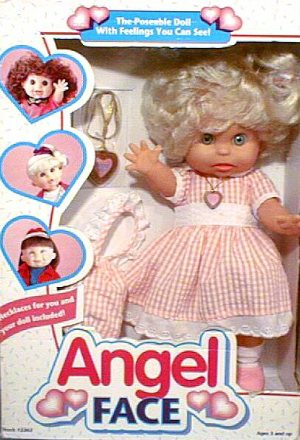 Below is an actual NRFB Angel Face doll. The box shows many things in common with the Galoob Baby Face dolls. Poseable doll - feelings you can see - heart charm - "Angel" Face instead of "Baby" Face - Six expressions....... Berjusa sure was inspired by Galoob, weren't they??