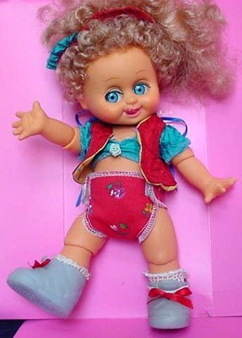 The body is made of hard plastic instead of vinyl, and the shoes are molded on. Also, the fingers were changed. But the size and shape is so much like Baby Face that I wonder if original BF molds were used to create this doll. The heads are not much like Baby Face at all.