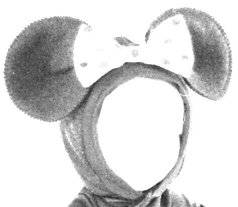 The ears for Mouse and Kitty are top stitched to the hood: they are not inserted in the dart, as the bunny ears are. The photo below is faded out so you can see the seams. The ears are made of double felt that is top-stitched around the edge to hold the pieces together. I used a zigzag stitch with matching black thread.