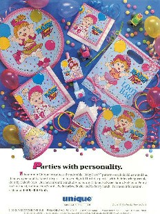 ![]() Click on any "Thumb" to see a larger picture of each advertisement: Kiscom hired and I art directed, a very talented young lady, who made drawings of each of the first group of dolls. These drawings were used on several licensed products. I especially remember them on a very nice line of party supplies, paper napkins, plates, tablecloths, and noisemakers etc. |