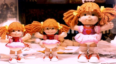 Now he commissioned me to reduce the size of the dolls, so they would price out right, and the packages with the scenes would not be too large to be affordable. He helped me out by reducing the heads for me, by means of the now, far advanced, since Baby Face's time, computerized pantograph. This made perfect replicas of my head, only smaller, and I only had to cast them in Latex and flock them, myself.