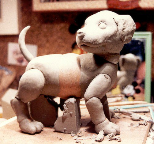 The pups were intended to emulate several different breeds, through slight variation in sculpture and more dramatic variation in color. They also had tails that wagged at the slightest touch and mouths that opened and closed to display very detailed teeth and tongues. A hidden squeeker made puppy sounds when the mouth was moved! And each pup was "flocked" to give it a soft feel. As with Baby Face, I created three Sculpy prototypes, and made what turned out to be a disarmingly irresistible video tape, staring "Pee Wee" the movie cat in his first major role! When "Pee" opened the front door to find three Puppies waiting to be let in, he stole the show and Sold the Pups at the same time! This time to Mattel, who saw the tape and fell in love with my best buddy, Pee Wee! Mattel is the ultimate "Thank You for the product, See you at Toy Fair", company. So we never heard or saw anything until Toy Fair. They renamed the product and called it "My Very Own Puppy"! Alas, the new name was the only part of the project that had been changed for the better! The articulation had been largely eliminated, and the pups had become more like statues than posable "dolls". The tails
